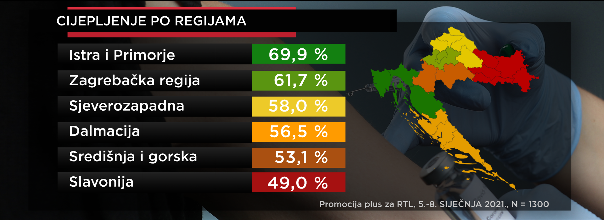 cijepljenja su Slavonci – 49 posto ih se želi cijepiti.
