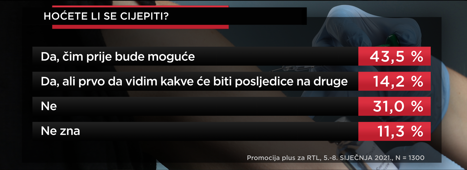 Agencija Promocija plus provela je za RTL ekskluzivno istraživanje o stavovima građana o cijepljenju.