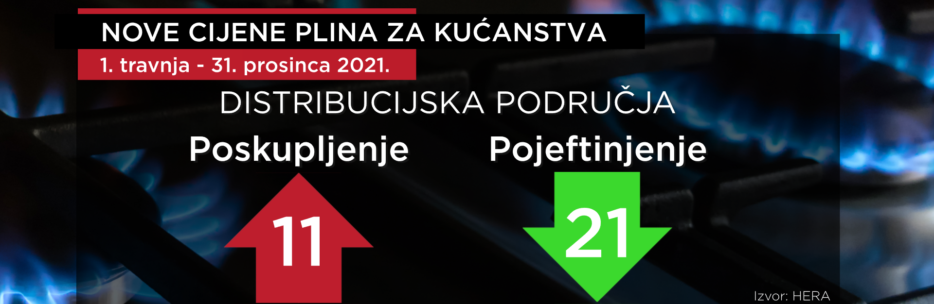 kraja godine u 11 njih plin poskupljuje, a u 21-om pojeftinjuje.