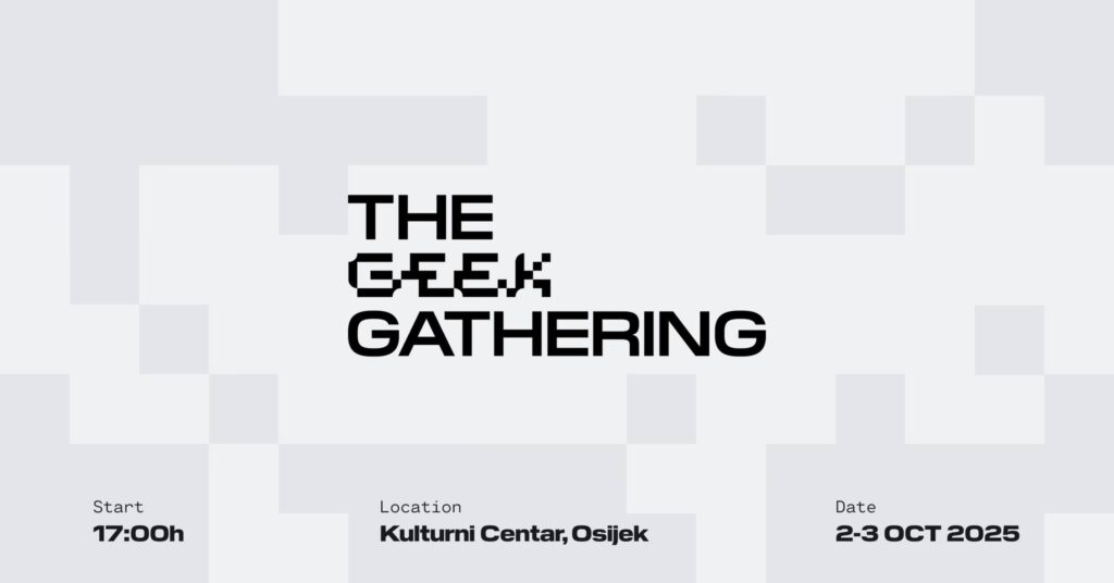 Osijek će početkom listopada ponovno postati središte regionalne IT i tech scene. U Kulturnom centru 2. i 3. listopada održat će se The Geek Gathering 2025., jedno od najznačajnijih okupljanja zaljubljenika u tehnologiju i inovacije. Program počinje 2. listopada pred-događanjima, među kojima su inspirativna predavanja i pre-party, dok će 3. listopada biti održan glavni dio […]