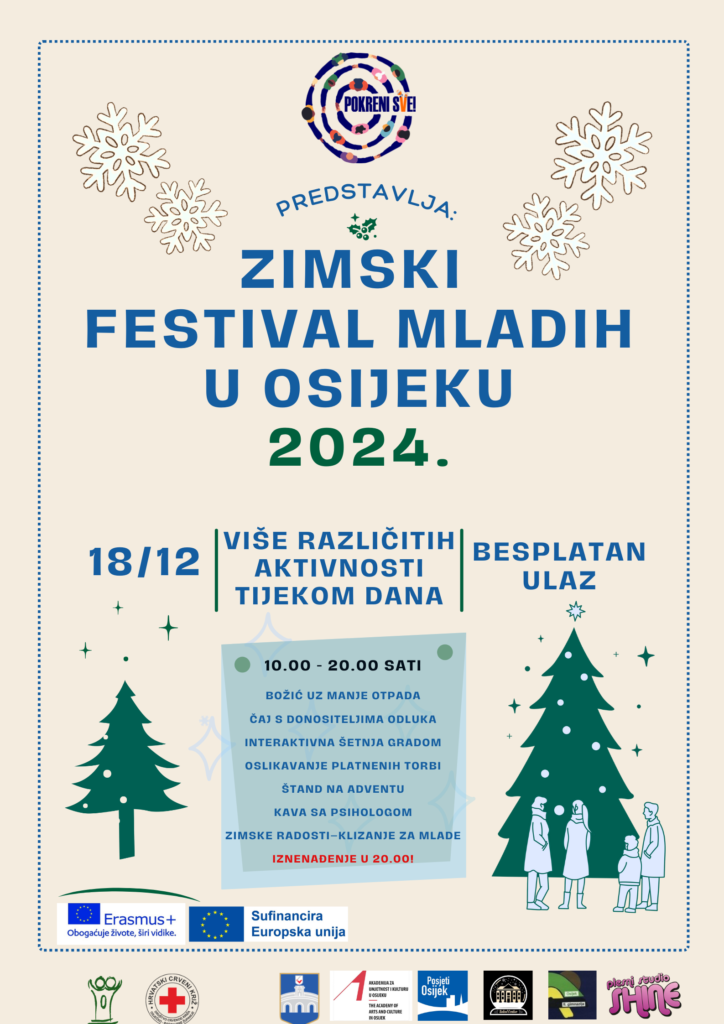 Pridružite se Zimskom festivalu mladih 2024. u Osijeku koji će se održati od 10 do 20 sati 18. prosinca u Tvrđi.