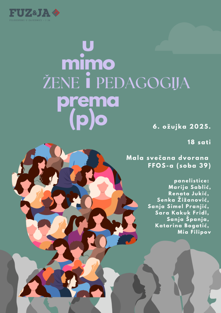 U četvrtak, 6. ožujka s početkom u 18 sati na Filozofskom fakultetu u Osijeku (Mala svečana dvorana, soba 39) održat će se panel-rasprava pod nazivom ”Žene u pedagogiji”.