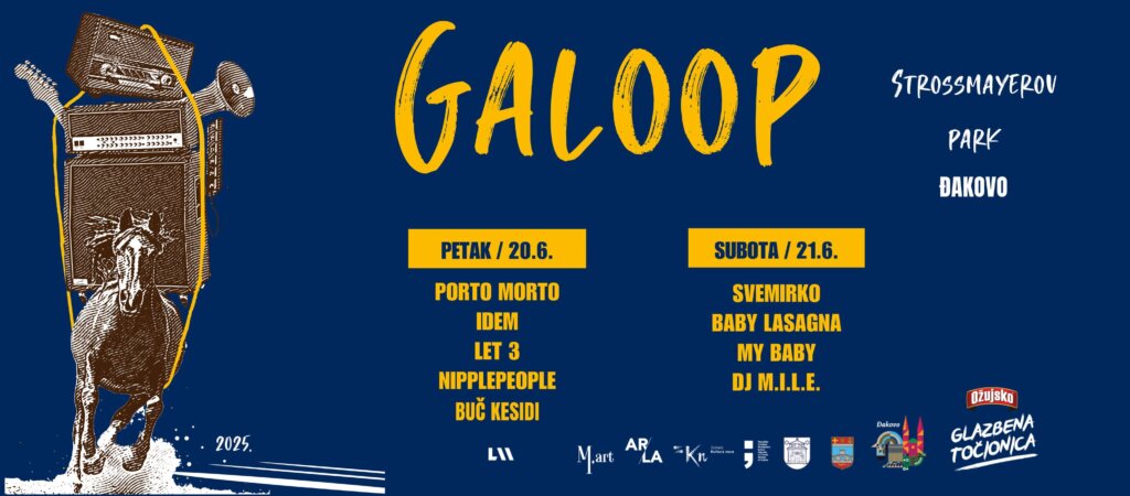 Galoop festival i ove godine obećava nezaboravno iskustvo u zelenom srcu Đakova, spajajući različite glazbene žanrove i pružajući posjetiteljima priliku za time da uživaju u vrhunskim nastupima pod zvjezdanim nebom. Ne propustite, stoga, priliku postati dijelom tog jedinstvenog festivala!