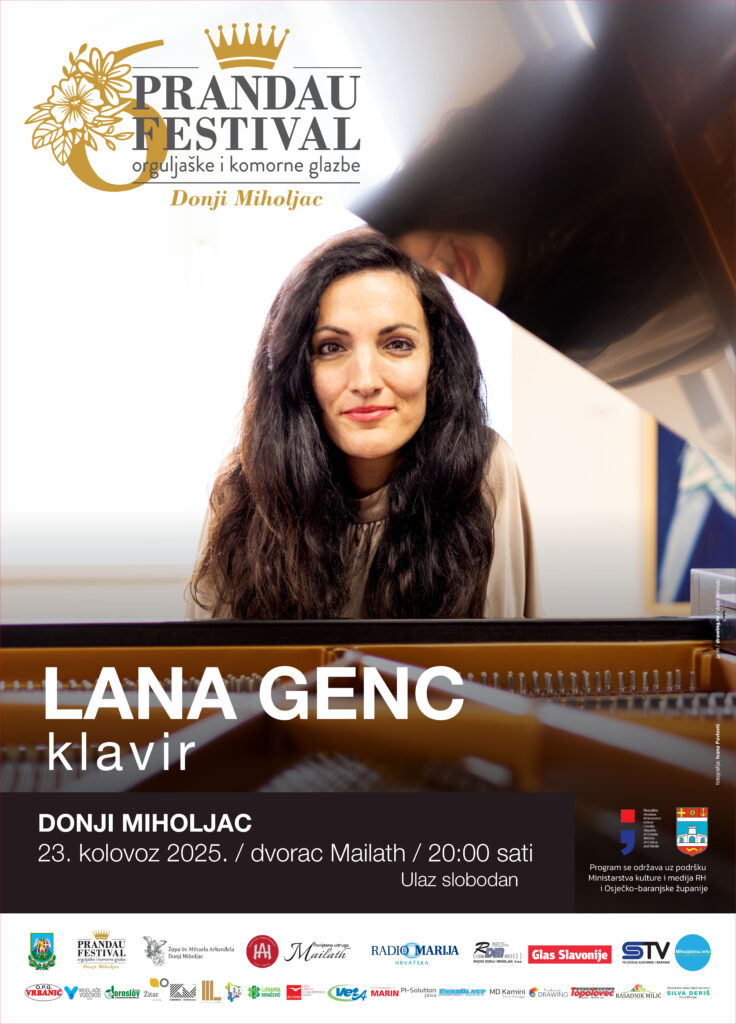 Hrvatska pijanistica Lana Genc, poznata po virtuoznim izvedbama i bogatoj međunarodnoj karijeri koja obuhvaća koncerte u Hrvatskoj i Europi, Japanu, Sjedinjenim Američkim Državama i Južnoj Americi, nastupit će četvrtom koncertu 6. PRANDAU FESTIVALA, koji će se održati u subotu, 23. kolovoza u dvorcu Mailáth s početkom u 20 sati. Ulaz na koncert je slobodan.