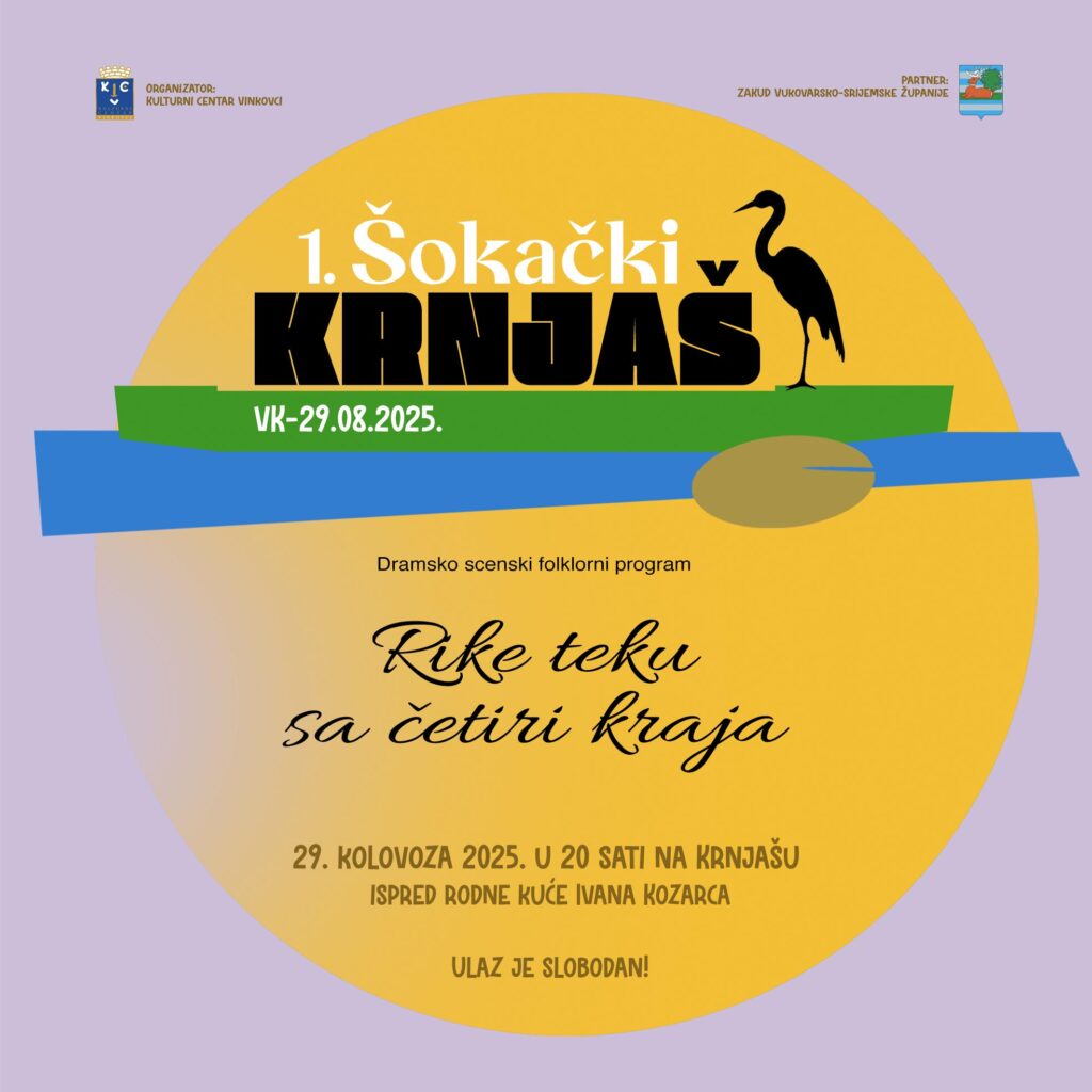 U petak, 29. kolovoza, s početkom u 20 sati, na ambijentalnom prostoru Krnjaša ispred rodne kuće Ivana Kozarca po prvi puta će se održati nova kulturna manifestacija pod nazivom Šokački Krnjaš, osmišljena kao posveta tradicijskoj baštini i bogatstvu slavonskoga duha.