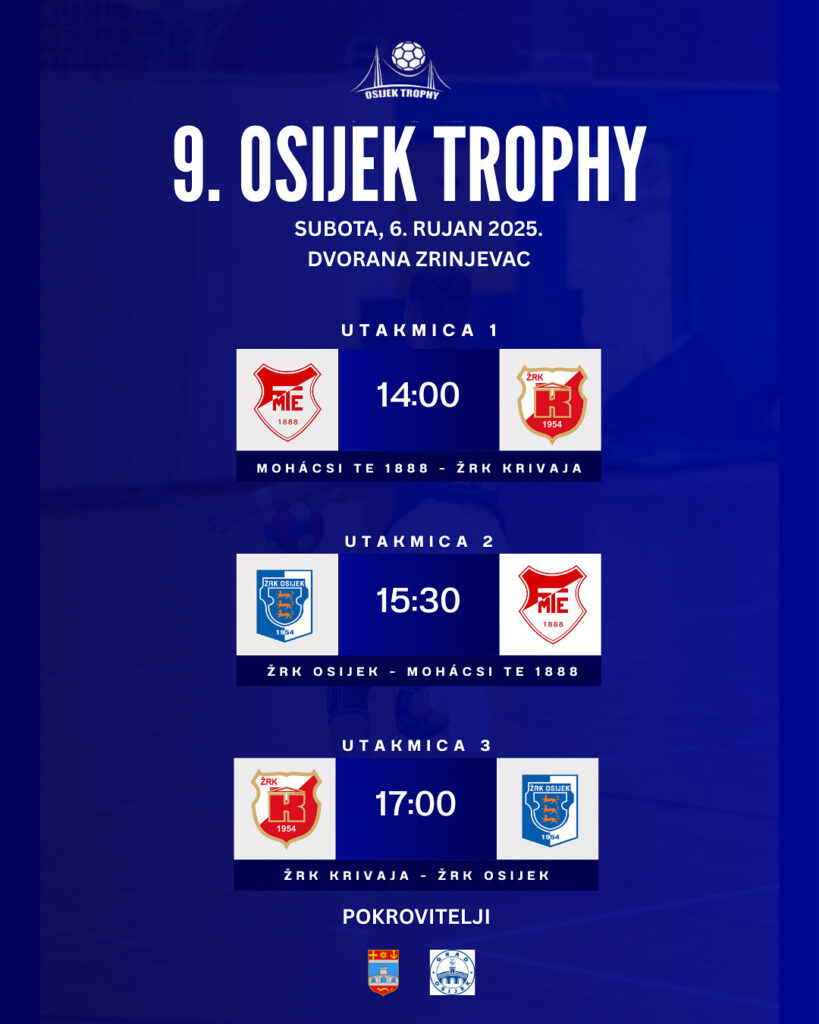 Nakon mjesec dana intenzivnih priprema, pred nama je posljednja provjera prije početka prvenstva – tradicionalni međunarodni 9. Osijek Trophy! Ženski rukometni klub Osijek i ove godine priprema uzbudljiv turnir te će ugostiti vrhunske ekipe iz Mađarske i Bosne i Hercegovine.