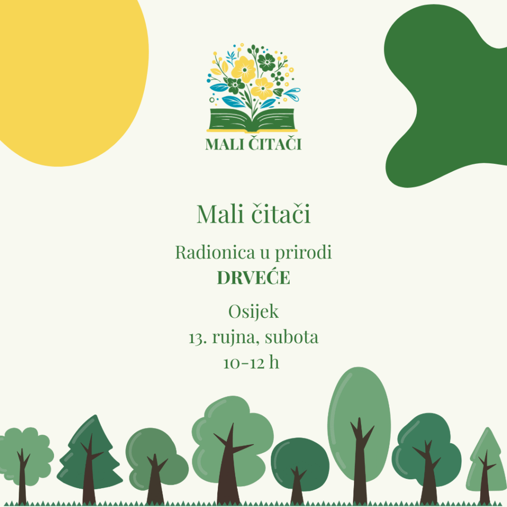 Iduća radionica Drveće održava se u subotu, 13. rujna, od 10 do 12 h, a svi detalji mogu se pronaći na Instagram i Facebook stranici Mali čitači te web stranici