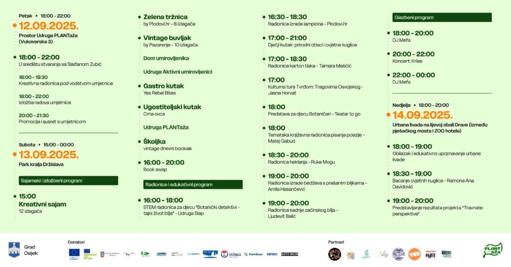 Peto izdanje ekološko-kreativnog festivala i ove će godine obogatiti mjesec rujan bogatim programom ispunjenim zelenim, održivim i edukativnim sadržajem. 5. PLANTida održat će se od 12. do 14. rujna 2025.