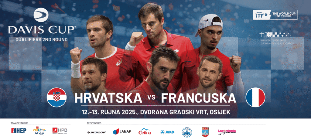 Drugi put 2025. godine, a peti put ukupno, Osijek će biti domaćin susreta Davis Cup. Odlukom Hrvatskog teniskog saveza (HTS) naši će tenisači dočekati Francusku u drugom kolu Qualifier faze ovog natjecanja u istoj dvorani u kojoj su u veljači svladali Slovačku 3:1. Igrat će se 12. i 13. rujna, u dvorani Gradski vrt, a podloga će biti zemlja.
