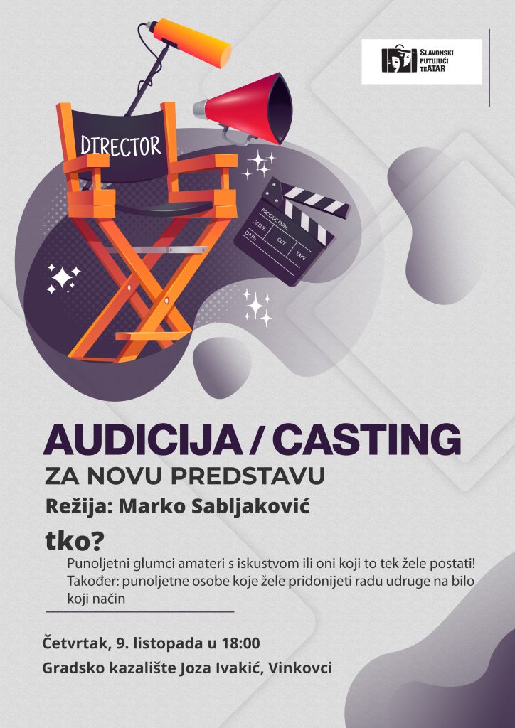 Pozivamju se sve punoljetne glumce amatere, s iskustvom ili bez, – da se odazovu pozivu na audiciji/castingu