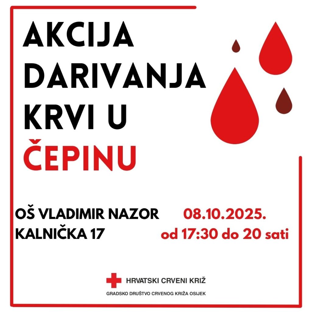 Gradsko društvo Crvenog križa Osijek i Klinički zavod za transfuzijsku medicinu KBC-a Osijek u suradnji s općinom Čepin i Udrugom oženjenih muškaraca organiziraju redovnu akciju dobrovoljnog davanja krvi.