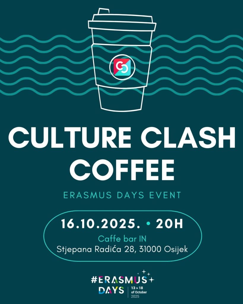 Udruga Culture Clash Croatia poziva te na opušteno i informativno druženje uz kavu – Culture Clash Coffee, koje organiziramo u sklopu Erasmus Days 2025!