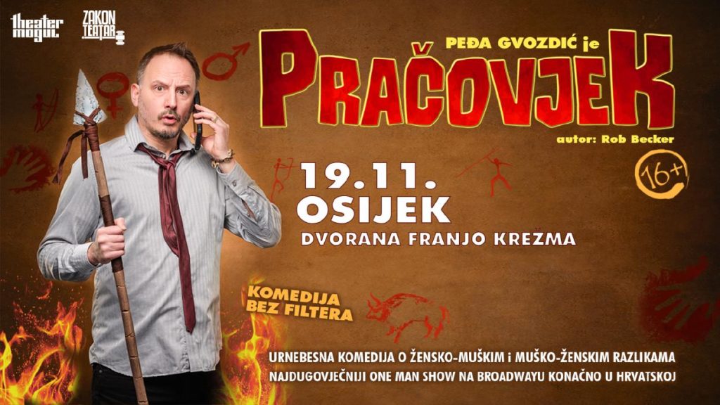 Najdugovječniji one man show na Broadwayu konačno dolazi i u Hrvatsku! Autor predstave je Rob Becker, a redatelj i glumac u hrvatskoj verziji je Peđa Gvozdić. Predstava „Pračovjek“ bit će izvedena 19. studenog 2025. godine s početkom u 20:00 sati u Koncertnoj dvorani Franjo Krežma.