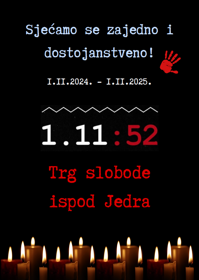 Povod je obilježavanje godišnjice pada nadstrešnice u Novom Sadu koja je odnijela 16 života. Prosvjedi u Srbiji traju već godinu dana, a osječka studentska inicijativa u travnju je organizirala skup solidarnosti i doček maratonaca koji su trčali iz Novog Sada do Europskog parlamenta u Strasbourgu kako bi dostavili pisma.