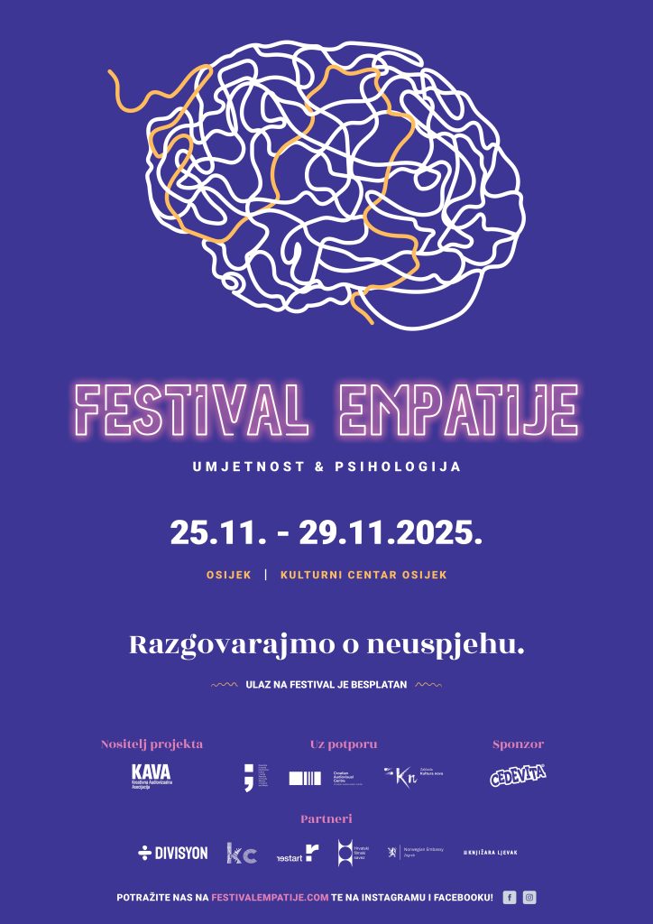 Također je cilj normalizirati unutarnje doživljaje s kojima se možemo susresti kad smo u teškoj situaciji. Ta teška situacija ove je godine NEUSPJEH. Promatramo neuspjeh s raznih strana i nastojimo kroz umjetničke i edukacijske sadržaje javnosti približiti kako razumjeti, prihvatiti i konstruktivno se nositi s iskustvom neuspjeha – u osobnom, profesionalnom i društvenom kontekstu. Festival empatije održava se u Zagrebu, Osijeku i Rijeci.