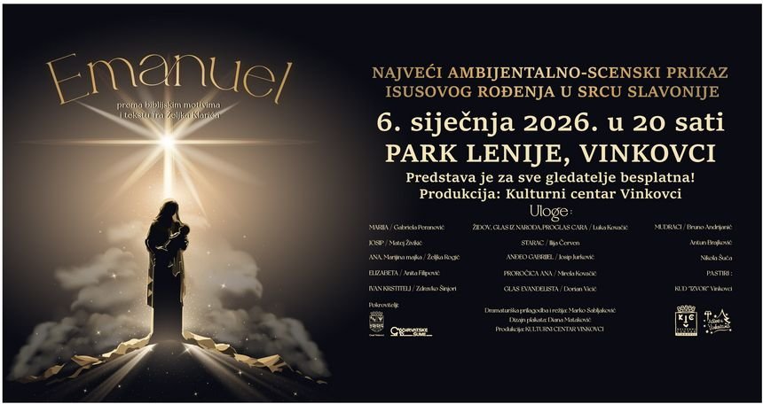 Predstava EMANUEL zamišljena je kao snažan završetak adventskog i božićnog vremena u Vinkovcima, namijenjena svim generacijama te svima koji žele doživjeti blagdansku priču ispričanu na jedinstven, ambijentalan način.