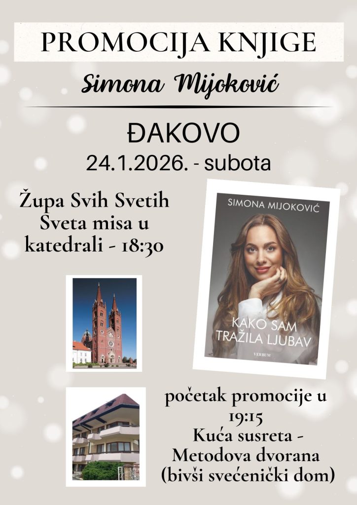 Tako će prvi stići u subotu, 24. siječnja u Đakovu u Metodovoj dvorani (bivši svećenički dom) u 19:15 sati, zatim nedjelju 25. siječnja u Osijeku u Župi Preslavnoga Imena Marijina (u Pastoralnom centru bl.Alojzija Stepinca) s početkom u 19:30 sati, te u ponedjeljak, 26. siječnja u Slavonskom Brodu u crkvi Bezgrešnog Srca Marijina u 18:30 sati.