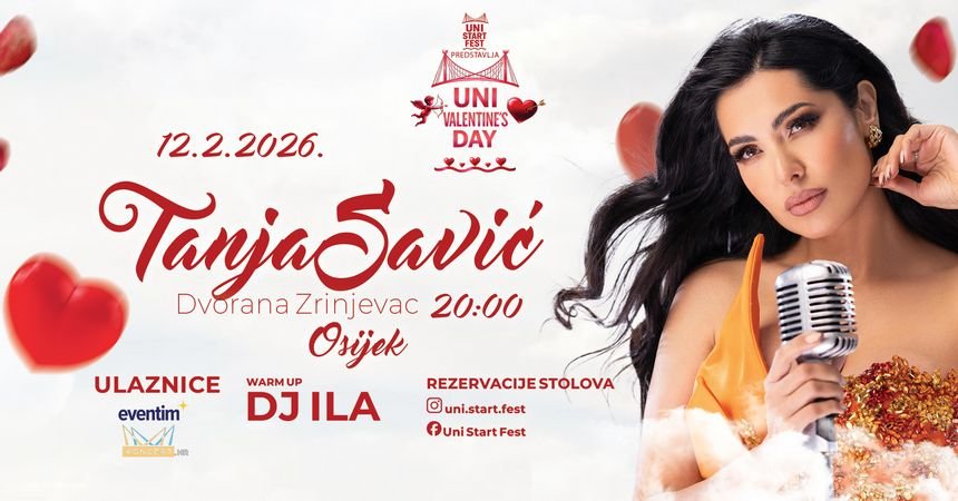 U četvrtak, 12. veljače 2026. u Osijeku vas očekuje poseban valentinovski koncert Tanje Savić uz vrhunsku produkciju i atmosferu koja spaja emociju koncerta i energiju noćnog izlaska.