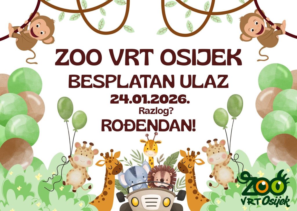 ZOO vrt Osijek u subotu, 24. siječnja 2026. godine, obilježava svoj rođendan te tim povodom svim građanima i posjetiteljima omogućuje besplatan ulaz u zoološki vrt.