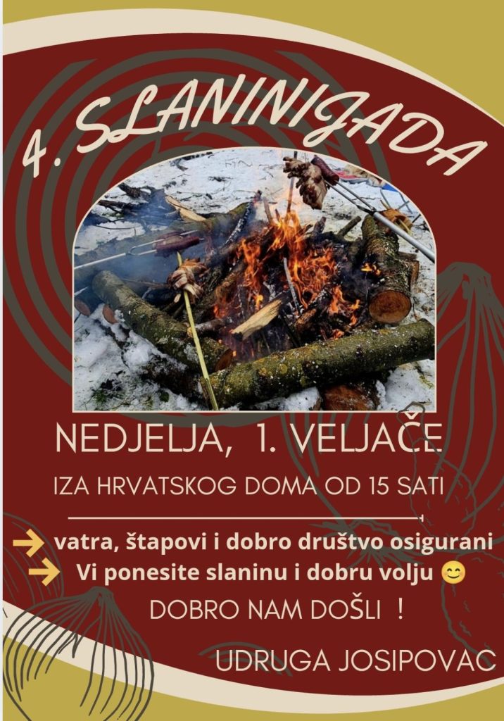 Udruga Josipovac poziva sve zainteresirane u nedjelju 1.2..2026., od 15 sati na 4. Slaninijadu