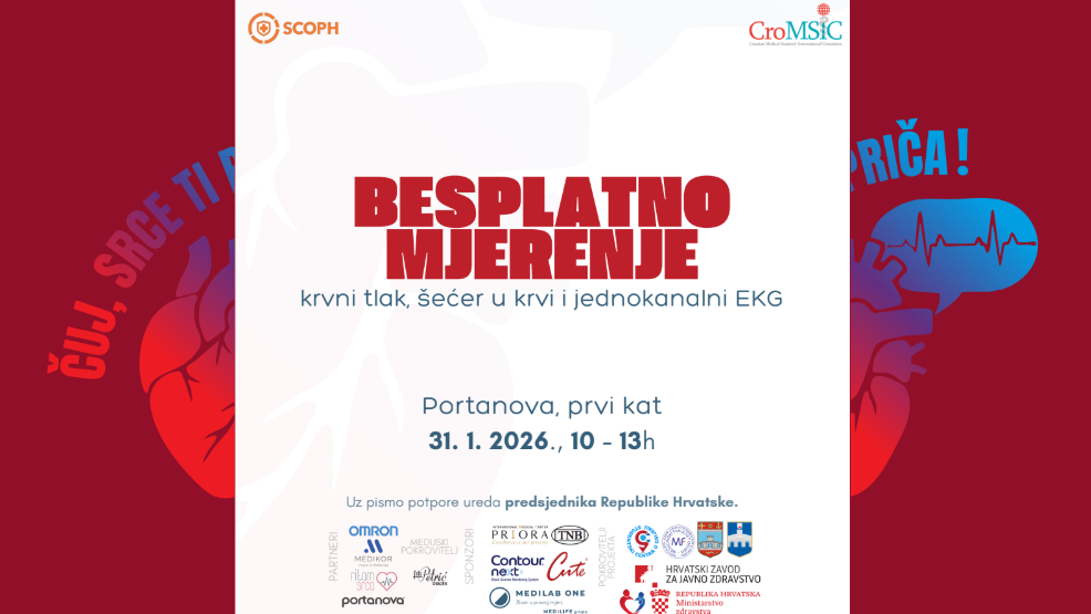 Udruga studenata medicine Hrvatska – CroMSIC, najavljuje prvu akciju u novoj godini njihovog javnozdravstvenog projekta “Čuj, Srce Ti Priča!” koje će se održati u subotu, 31. 01. 2026. u 10h u trgovačkom centru Portanova na 1. katu ispred trgovine Muller.