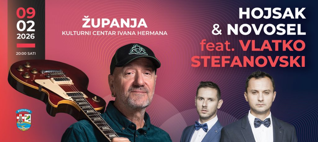 Županja će u ponedjeljak, 9. veljače 2026. godine, postati središte vrhunske glazbene umjetnosti. U programu 59. Šokačkog sijela, u Kulturnom centru Ivana Hermana, s početkom u 20 sati, publiku očekuje izniman koncertni događaj – nastup dua Hojsak & Novosel uz gosta, jednog od najboljih svjetskih gitarista, legendarnog Vlatka Stefanovskog.