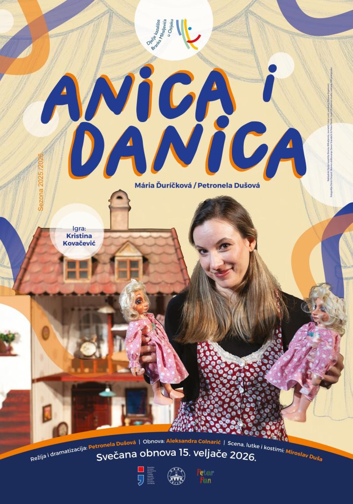 Dječje kazalište Branka Mihaljevića poziva na premijernu izvedbu obnovljene predstave “Anica i Danica” autorice Márie Ďuríčkove u dramatizaciji i režiji Petronele Dušove u nedjelju, 15. veljače s početkom u 10,30 sati. Svečanu obnovu potpisuje glumica i lutkarica Aleksandra Colnarić, za scenu, lutke i kostime zaslužan je Miroslav Duša, a u ovoj obnovljenoj monodrami igra Kristina Kovačević.