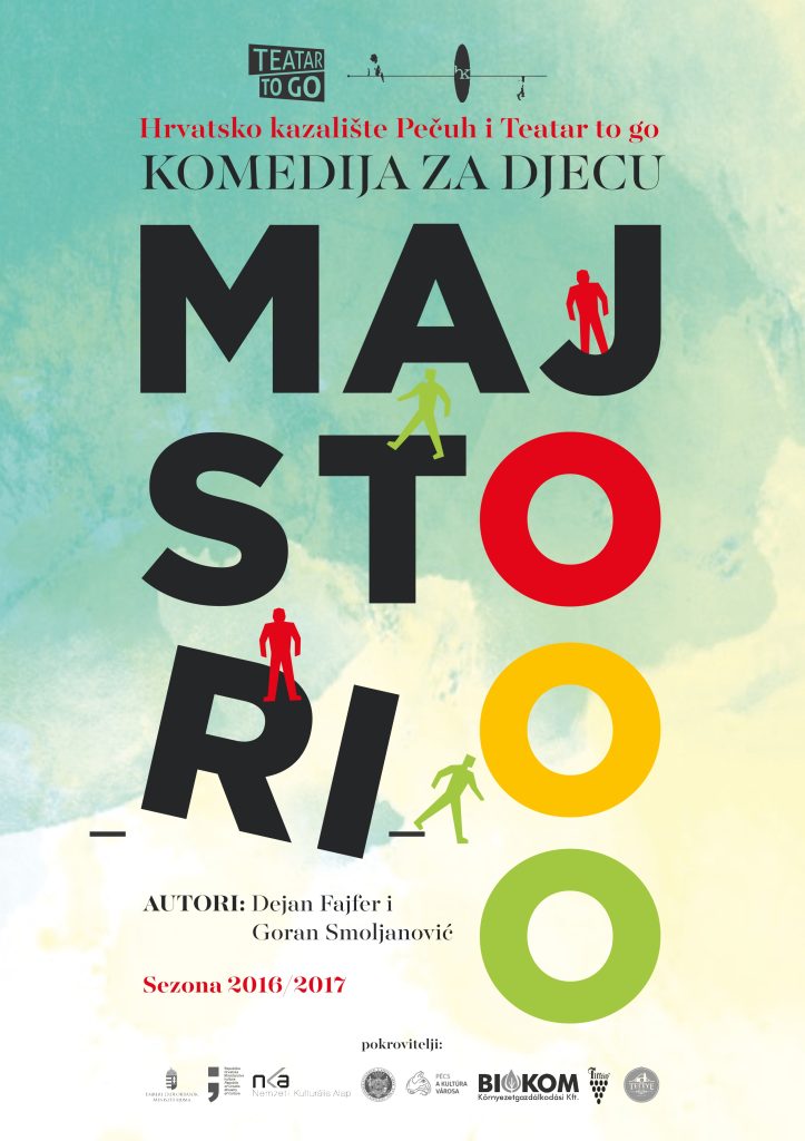 S veseljem najavljujemo gostovanje Hrvatskog kazališta Pečuh i Teatra To Go s predstavom “Majstori” koji nam u goste stižu u subotu, 28. veljače u 18 sati. Popravljaju loša raspoloženja, brišu suze i razveseljavaju mališane i odrasle!