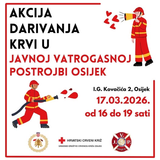 Brojnim akcijama darivanja krvi pridružili su se ovaj put i osječki vatrogasci, pripadnici Javne vatrogasne postrojbe Osijek.