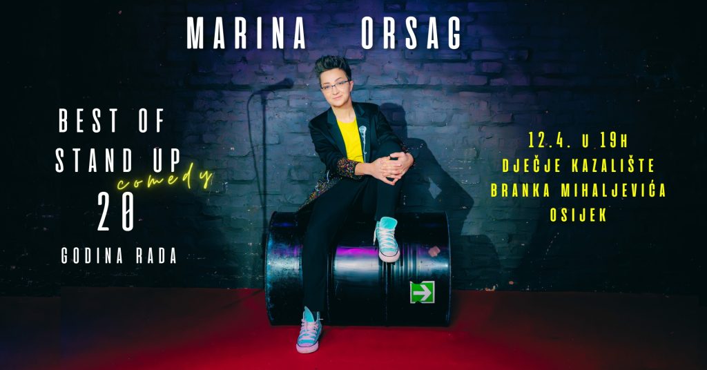 Marina Orsag je pionir hrvatskog stand-upa; upornost i entuzijazam koje već godinama unosi u svoj rad, bilo da se radi o mentoriranju, produkciji ili organizaciji, rezultirali su stvaranjem jake comedy scene na našem području te postavili temelje i omogućili djelovanje mnogim komičarkama i komičarima u Hrvatskoj i šire. A Osječanima poručuje: