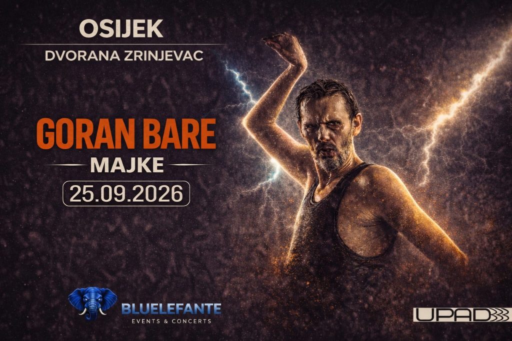 Goran Bare & Majke nastupit će u subotu, 25. rujna 2026. godine u Osijeku, u Dvorani Zrinjevac, s početkom u 21:00 sat.