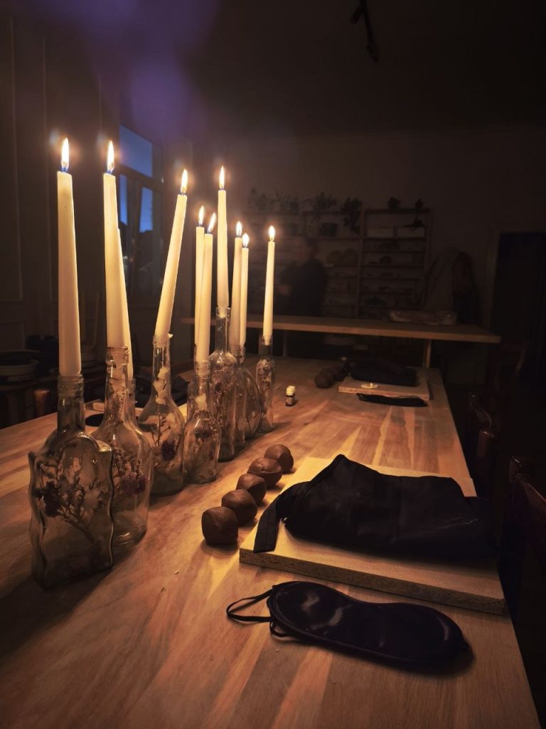 Ova radionica jedinstvena je po tome što spaja rad s glinom u mraku, zatvorenih očiju, s elementima muzikoterapije. Sudionici će kroz vođeni proces istraživati dodir, zvuk i unutarnje slike i to bez vizualnih distrakcija, s naglaskom na osjetila i vlastiti doživljaj.