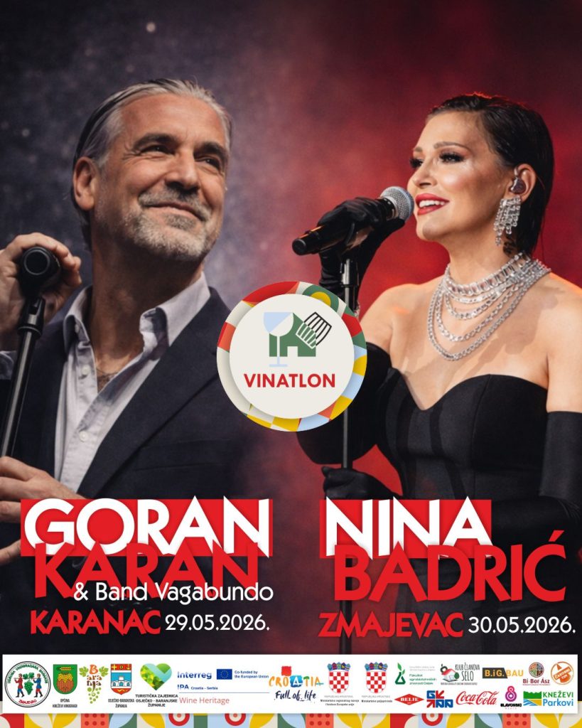 Vinatlon 2026. ponovno zove na čašu vrhunskog vina, susret s najboljim od Baranje i dva dana za pamćenje. Manifestacija je sufinancirana kroz natječaj INTERREG VI-A IPA Programa Hrvatska – Srbija