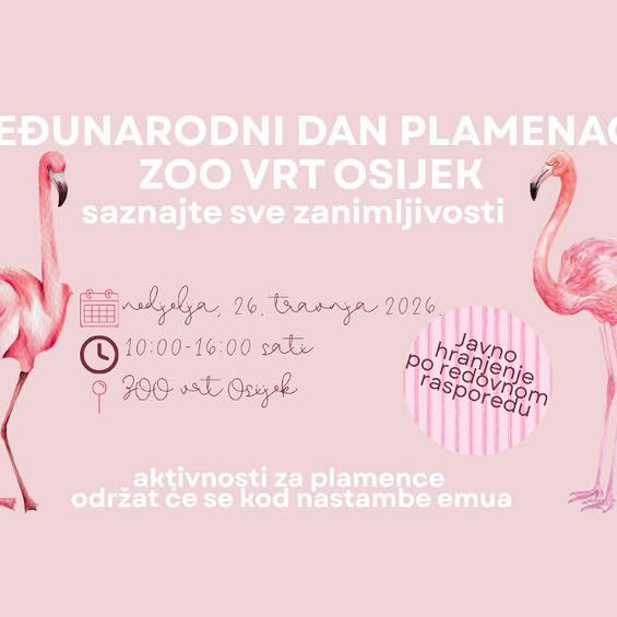 U Zoo vrtu Osijek 26. travnja obilježit će se Međunarodni dan plamenaca, u sklopu EAZA kampanje “Wetlands for Life“. Tom prigodom bit će organizirana edukativna i interaktivna radionica namijenjena svim uzrastima, s ciljem približavanja života ovih zanimljivih ptica i važnosti njihovih prirodnih staništa.