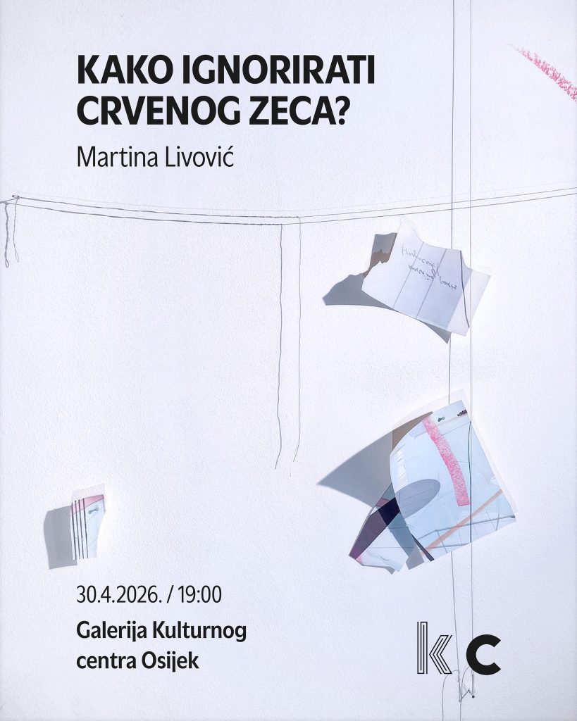 U Galeriji Kulturnog centra Osijek u četvrtak, 30. travnja 2026. u 19 sati otvara se samostalna izložba osječke umjetnice Martine Livović “Kako ignorirati crvenog zeca?”. Izložba ostaje otvorena do 24. svibnja.