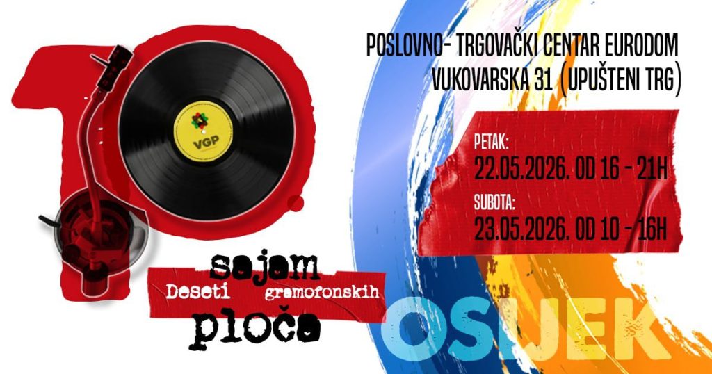 Osijek će 22. i 23. svibnja ponovno postati središte vinilne kulture u regiji, kada se održava jubilarni 10. Sajam gramofonskih ploča. Ovaj događaj, koji iz godine u godinu okuplja sve veći broj izlagača i posjetitelja, te potvrđuje status nezaobilaznog mjesta susreta kolekcionara, glazbenika i ljubitelja analognog zvuka.