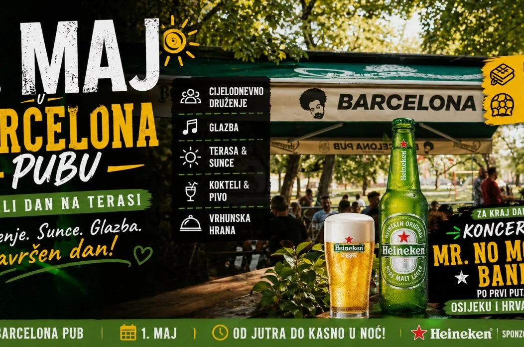 Barcelona Pub za ovogodišnji Praznik rada priprema cjelodnevno druženje na otvorenom uz glazbu, hranu, piće i večernji koncert benda Mr. No Money Band, koji će prvi put nastupiti u Osijeku.