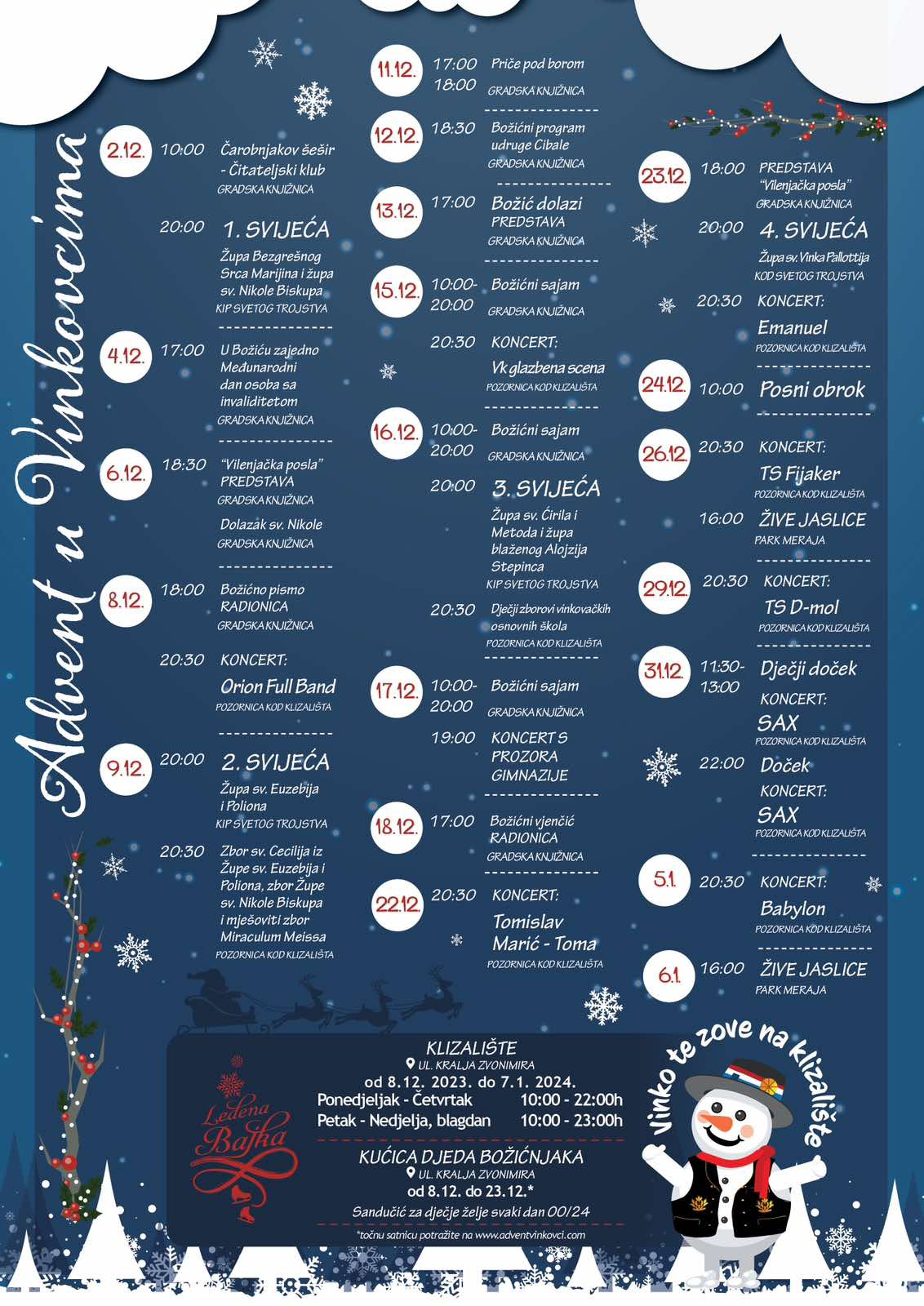 Na novoj lokaciji manifestacije, ispred Gradske knjižnice i čitaonice, danas je najavljen program ovogodišnjeg Adventa u Vinkovcima, 2.12.2023. – 6.1.2024.
