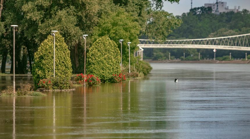 Osijek, 17.6.2024. – Vrhunac vodenog vala prolazi kroz Osijek. Danas u 21 sat iznosio je +246cm. Iako se Drava izlila na lijevu obalu, preplavila šetnicu i trkaču stazu, nema opasnosti za kuće. Visoki vodostaj svojevrsna je atrakcija za Osječane i njihove goste. Drava će se još nekoliko dana zadržati na ovim razinama, a onda bi se trebala vratiti u svoje korito.