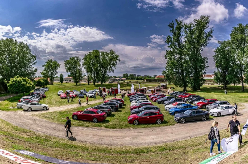 Osijek, 18.5.2025. – Nakon subotnjeg okupljanja u Vukovaru, ljubitelji talijanske automobilske marke Alfa Romeo – popularni Alfisti – došli su u nedjelju i do Osijeka, točnije do katakombi na lijevoj obali Drave.