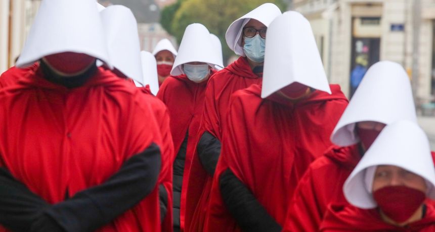 Žene u crvenim haljama prošetale središtem Osijeka i istaknule poruku ispred suda