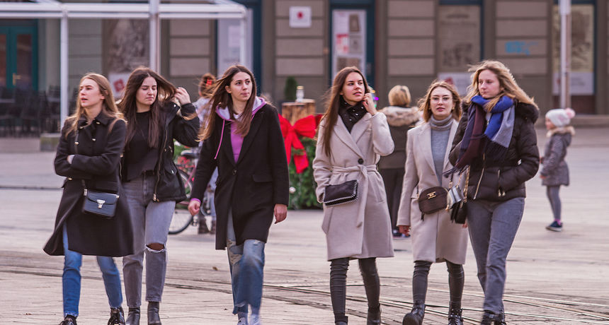 Osijek, 5.12.2020. – Osječani su sunčanu subotu iskoristili za šetnju gradom. Obućeni u toplu odjeću napravili su krug gradom bez sjedanja na omiljeno mjesto za kavicu, ali s upijenom dozom D vitamina u jesenske dane.