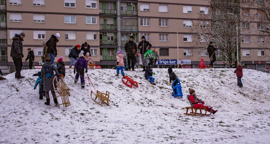 Osijek, 17.1.2021. – Novi snijeg zabijelio je Osijek, a na ulice su izašli svi oni željni bijelih pahulja. Snijegu su se posebno veselili oni najmlađi koji su ga iskoristili za sanjkanje na nekoliko lokacija.