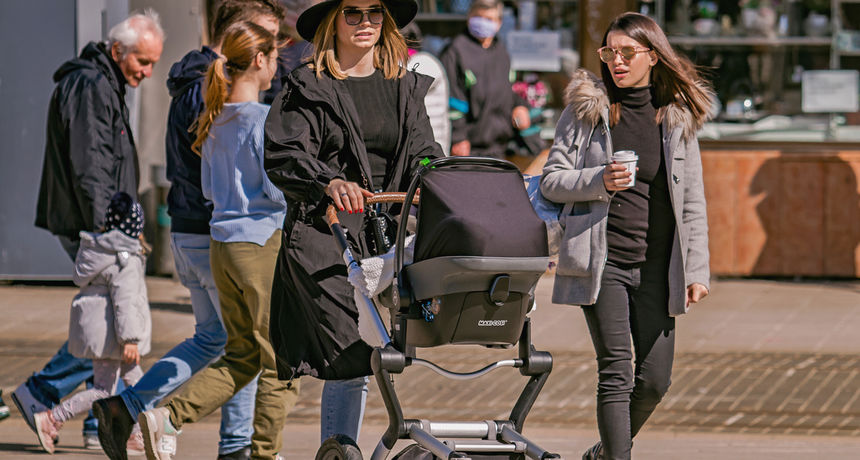 Osijek, 13.3.2021. – Novu sunčanu subotu u gradu Osječani su iskoristili za odlazak na gradsku tržnicu i za ispijanje kave na terasama kafića.