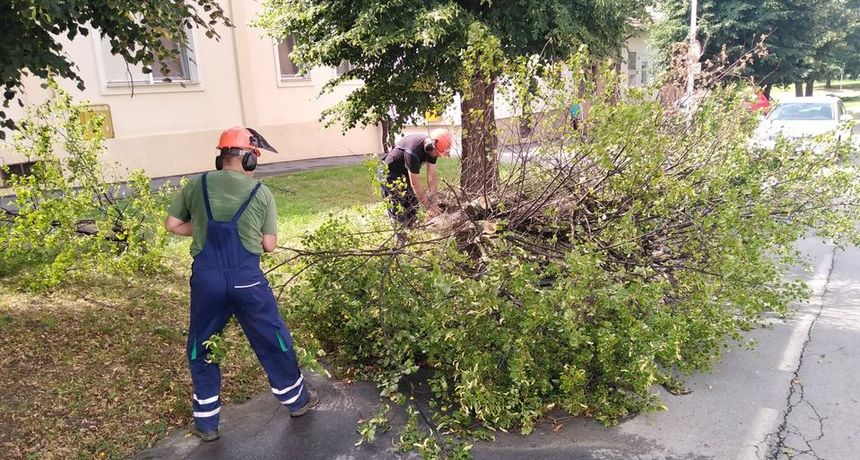 Osijek, 1.8.2021. Pune ruke posla imali su djelatnici osječkog Unikoma nakon kratkotrajnog, ali intenzivnog nevremena u ranim poslijepodnevnim satima u Osijeku.