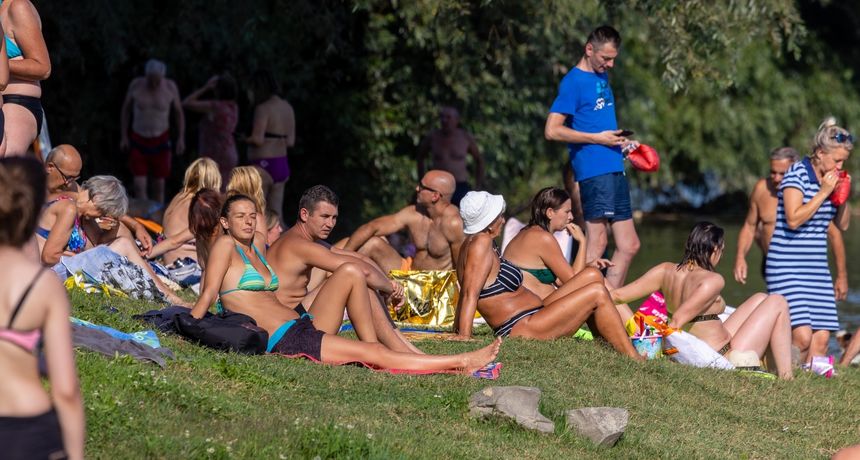 Osijek, 8.8.2021. – Novi val vrućine pogodio je Osijek kao i ostatak Hrvatske, a Osječani osvježenje traže na nekom od kupališta u gradu i okolici. Jedno od omiljenih mjesta zasigurno je ono kod željezničkog mosta ili popularnije kod Želje.