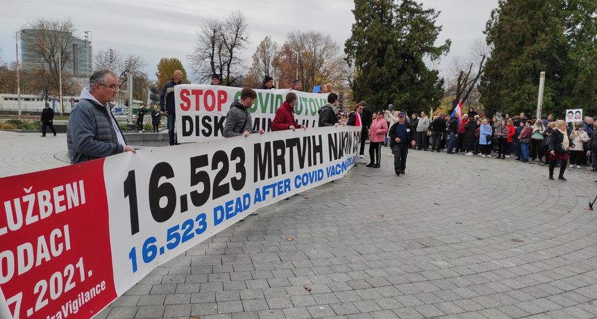 Osijek, 6.11.2021. Okupljeni građani izrazili su nezadovoljstvo zbog provođenja korona mjera i nametanja obveze cijepljenja