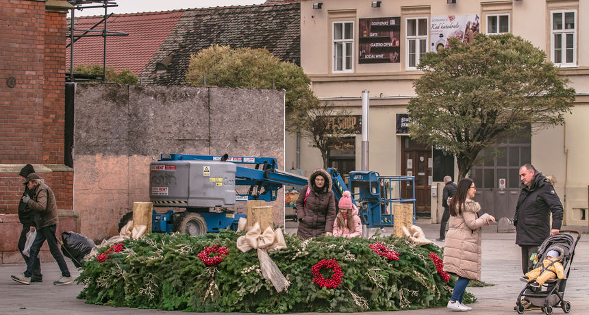 Osijek, 27.11.2021. – Suha subota bez padalina bila je idealna kulisa za posljednje pripreme prije nego potpuno zavlada blagdansko vrijeme. Grad se polako kiti za nadolazeći Advent, a Osječani užurbano obavljaju kupovini ili samo opušteno uživaju u gradu.