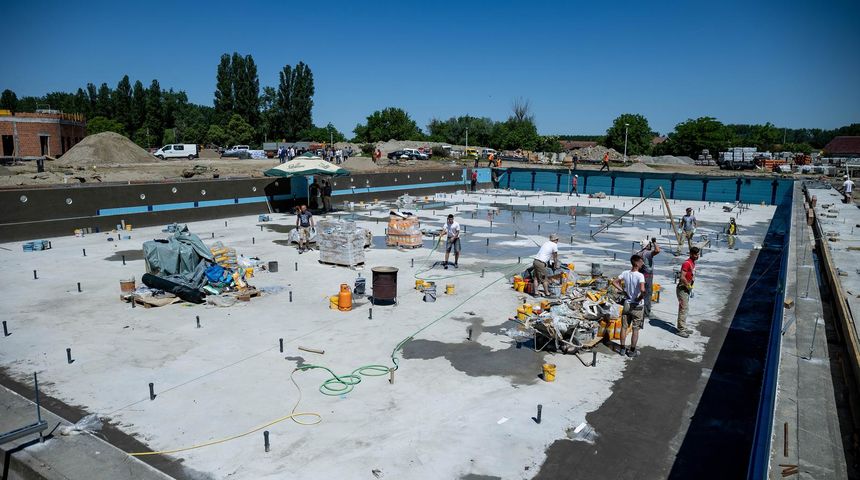 Osijek, 19.5.2022. – Prva faza radova na rekonstrukciji i izgradnji Športsko-rekreacijskog centra Copacabana privodi se kraju i bazeni će od srpnja biti spremni za kupališnu sezonu, poručio je u četvrtak osječki gradonačelnik Ivan Radić tijekom obilaska gradilišta.