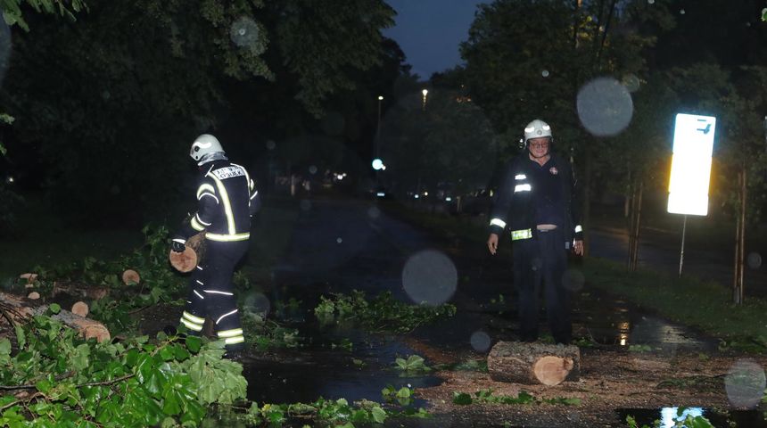 Osijek, 10.6.2022. – Večer u Osijeku obilježila je kiša i snažan vjetar koji su prouzročili i brojne srušene grane stabala. Jedna od njih pala je i na automobil u ulici Kralja Zvonimira pa su vatrogasci imali pune ruke posla.